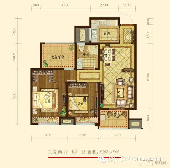 三人抱團享6000元/套優惠限時最后一天 在本屆房博會上,紫元•尚園主要在售房源為南向87方大三房,該戶型享有15㎡超大升級空間。戶型南北通透,三開間朝南。
